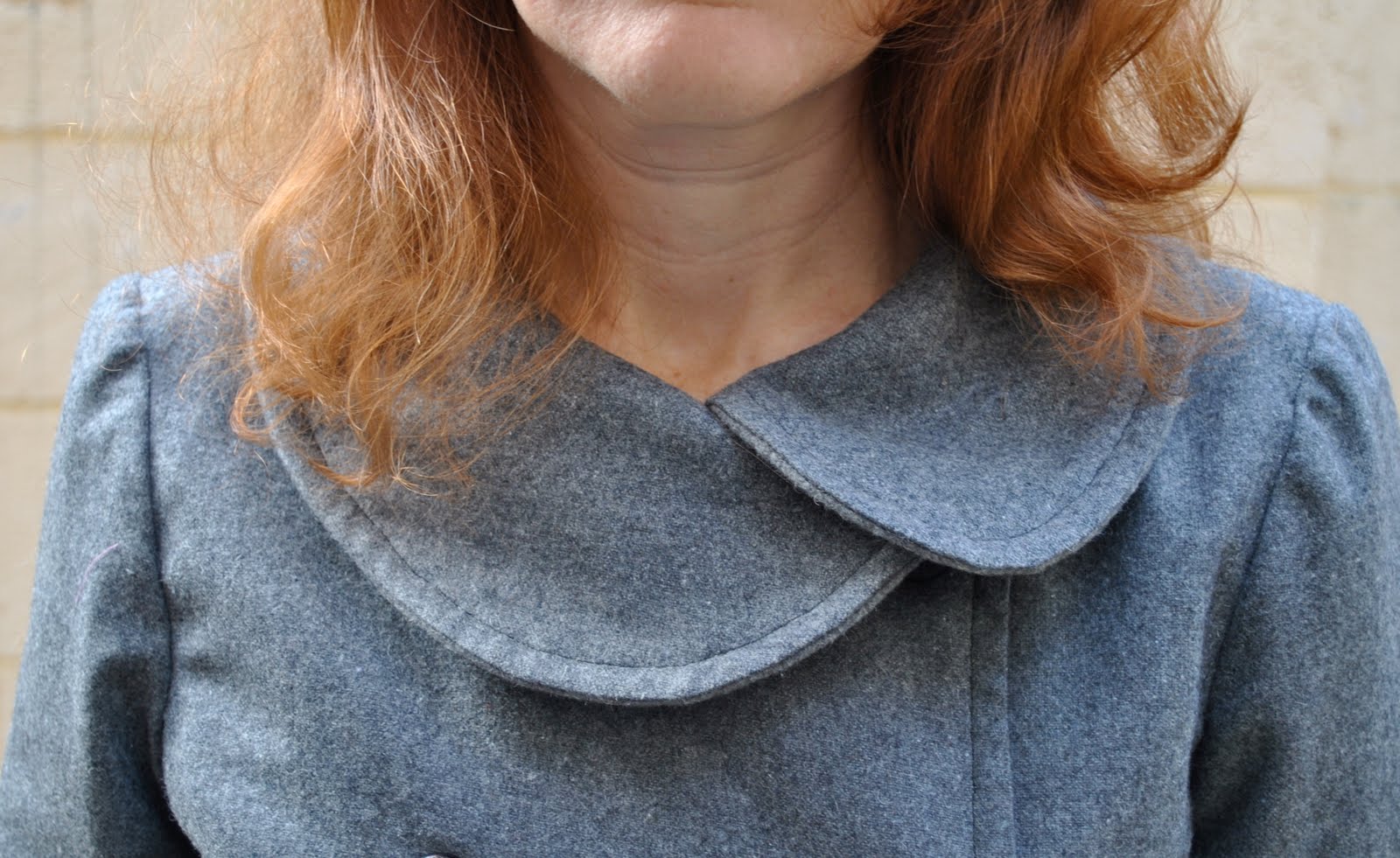 I made myself a coat for spring, using McCalls 5525, view B and grey wool fabric, bought back in March on a whim.  So, it took some cutting magic to get this coat out of the small amount of wool I had bought because there really wasn’t enough for this pattern!  When I realised this and went back to the store to get some more it had all been sold and I needed to buy a small amount of a different grey wool fabric which I used for the under collar and front facings, you can probably see on the close-up pictures the different fabric on the under/in-side of the coat but I think it’s not so different as to stand out in an ugly way.  Actually I think it worked out to be a blessing in disguise, because the second fabric is a much stiffer and thicker felted wool than the outer woven wool fabric, so I decided there was no need to interface, and I think it was the right decision not to do so.  The weight of the two wool layers together feels quite thick and stiff enough…