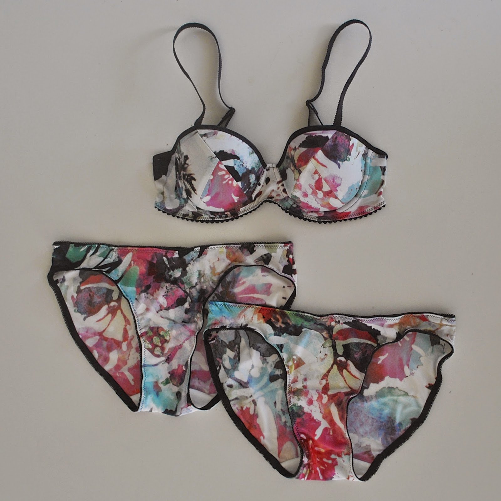 Another lingerie set, and a new-to-me bra pattern. This is pattern 2610 for a balconette style bra by makeBra, a Finnish lingerie pattern company. The two pairs of matching knickers are my usual McCalls 2772. The watercolour fabric is from…