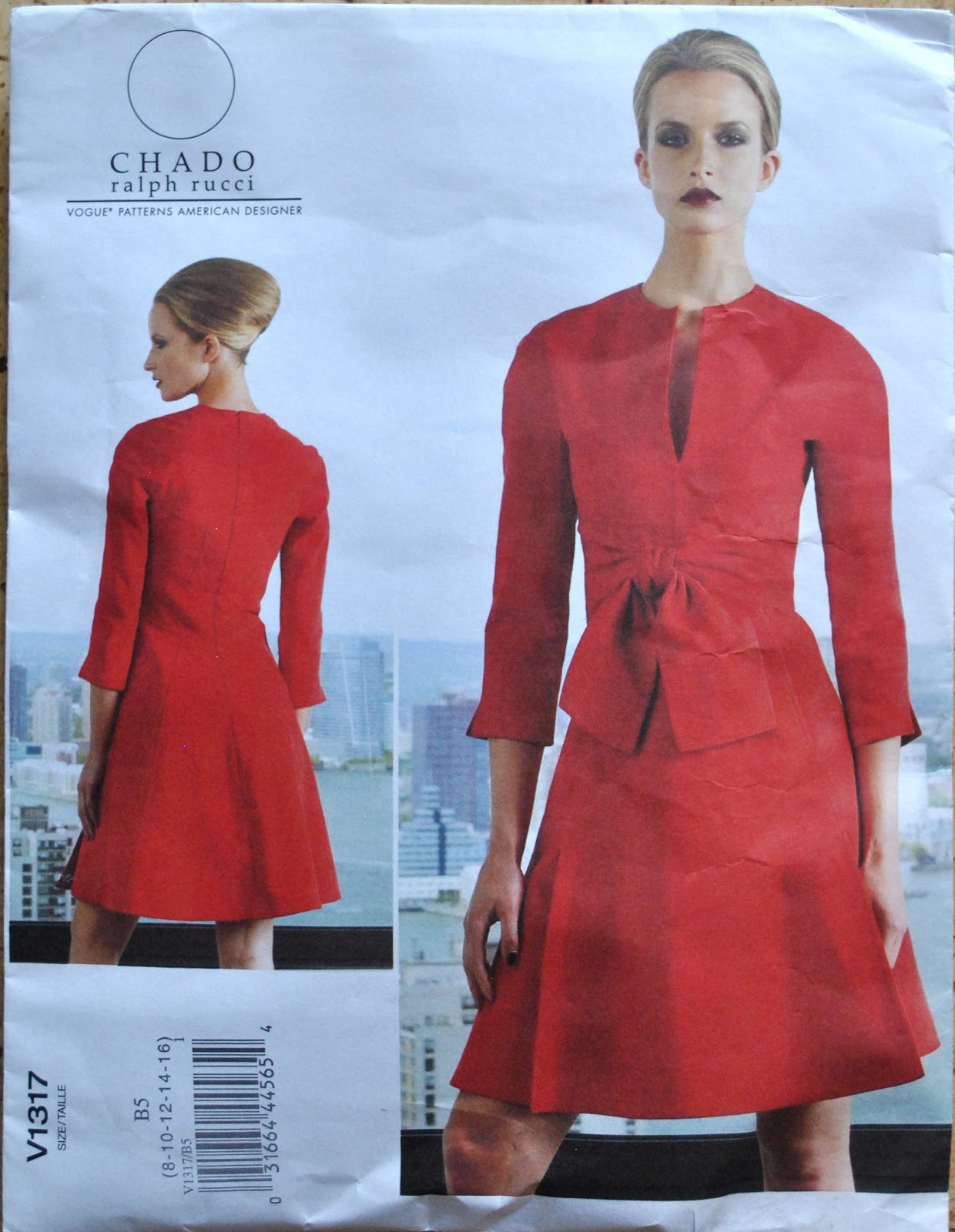 32-44. I cut a size 34 in the bodice, grading out from the waist to a size 38 at the hip level. Because of these personal sizing changes I also cut the skirt pieces to be a bit more flared going down to the hemline than the pattern to give a better look proportionally.