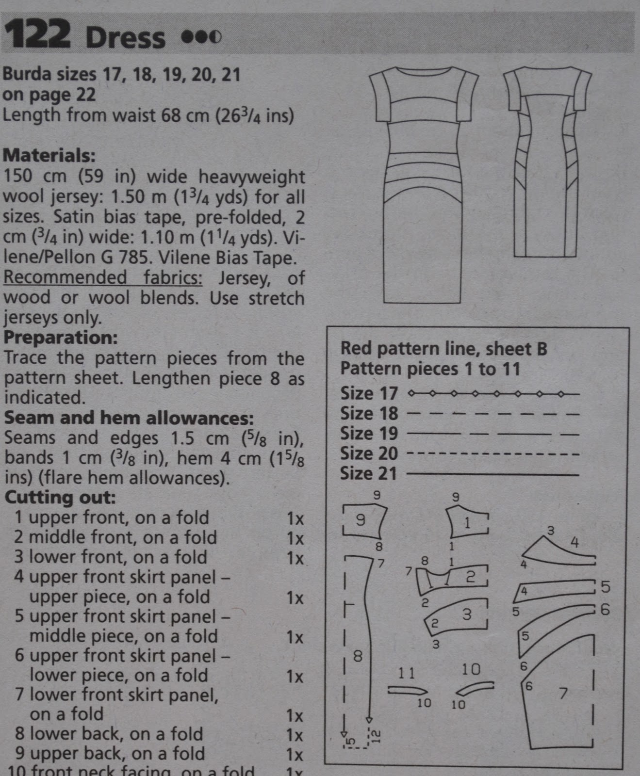 Australian sizes 8-14 (hips 88cm-108cm); I cut the size 10
