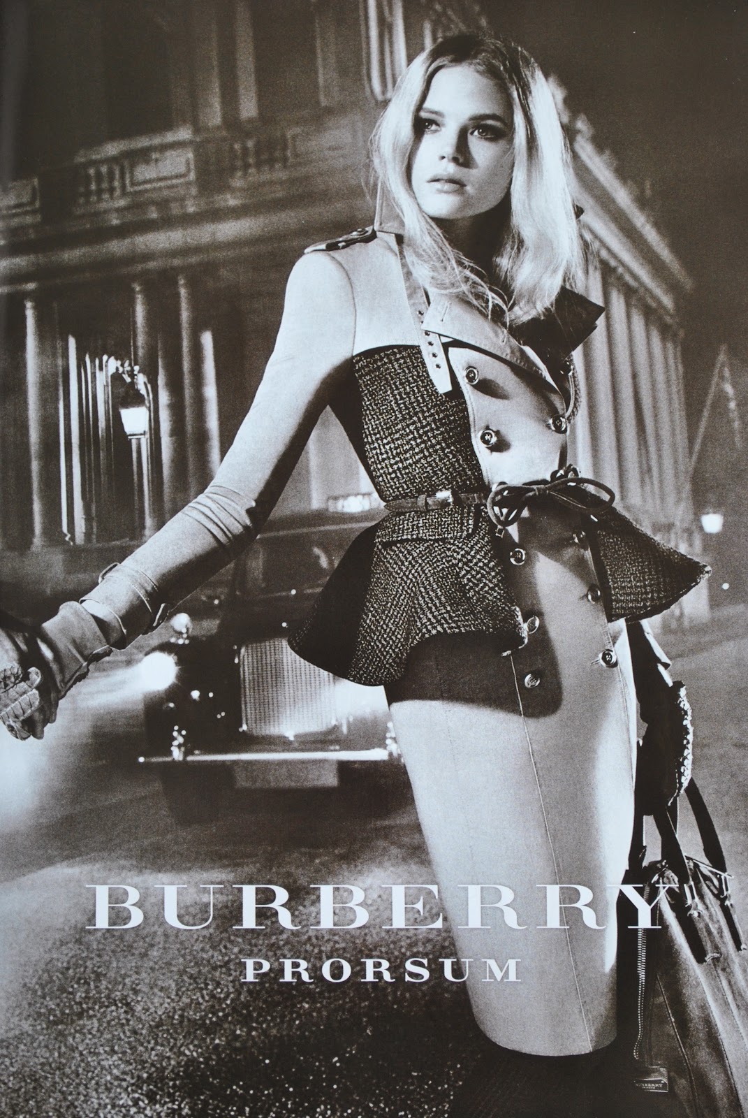 Above: both these ads taken from Vogue Australia.  At left; Burberry Prorsum, at right; JBrand.
