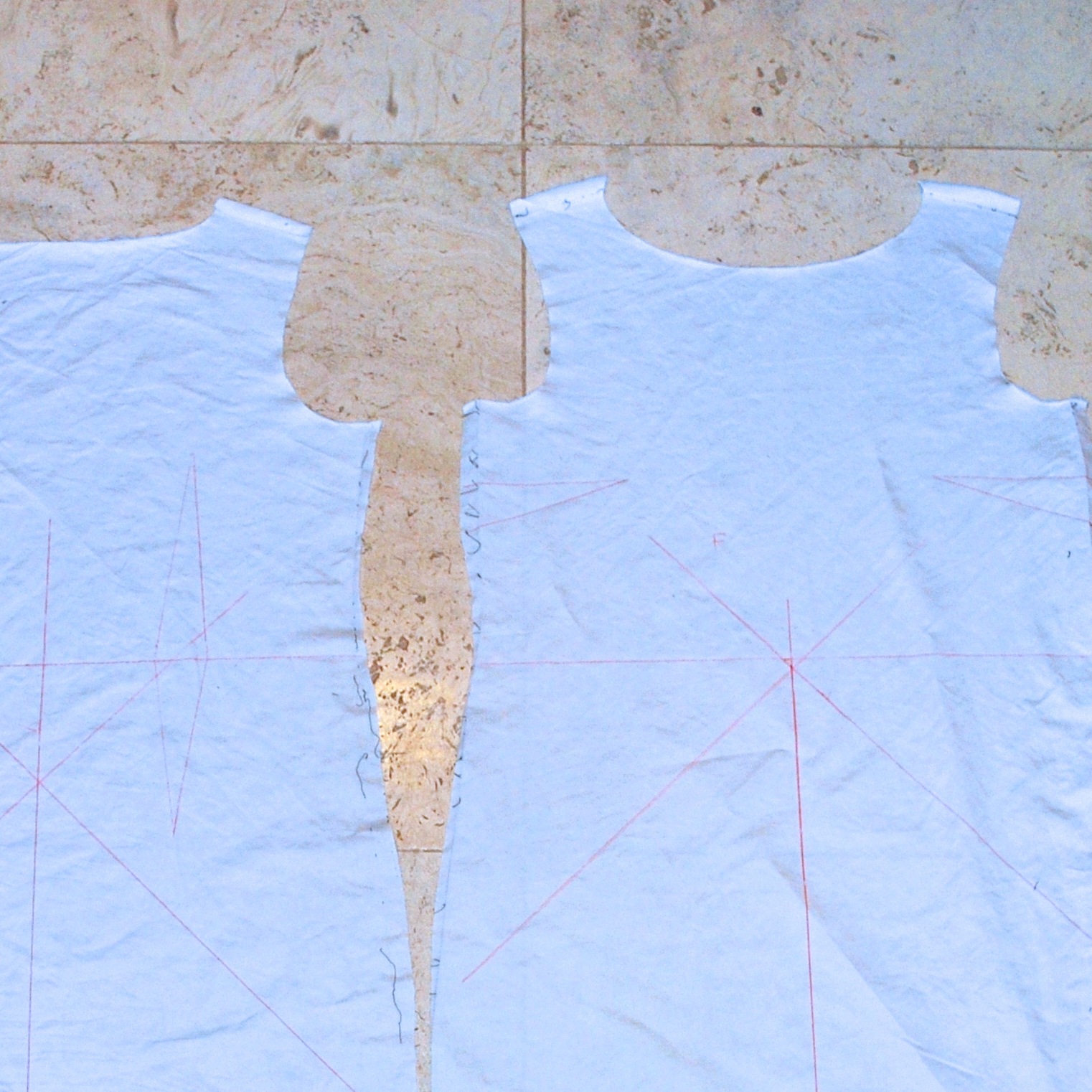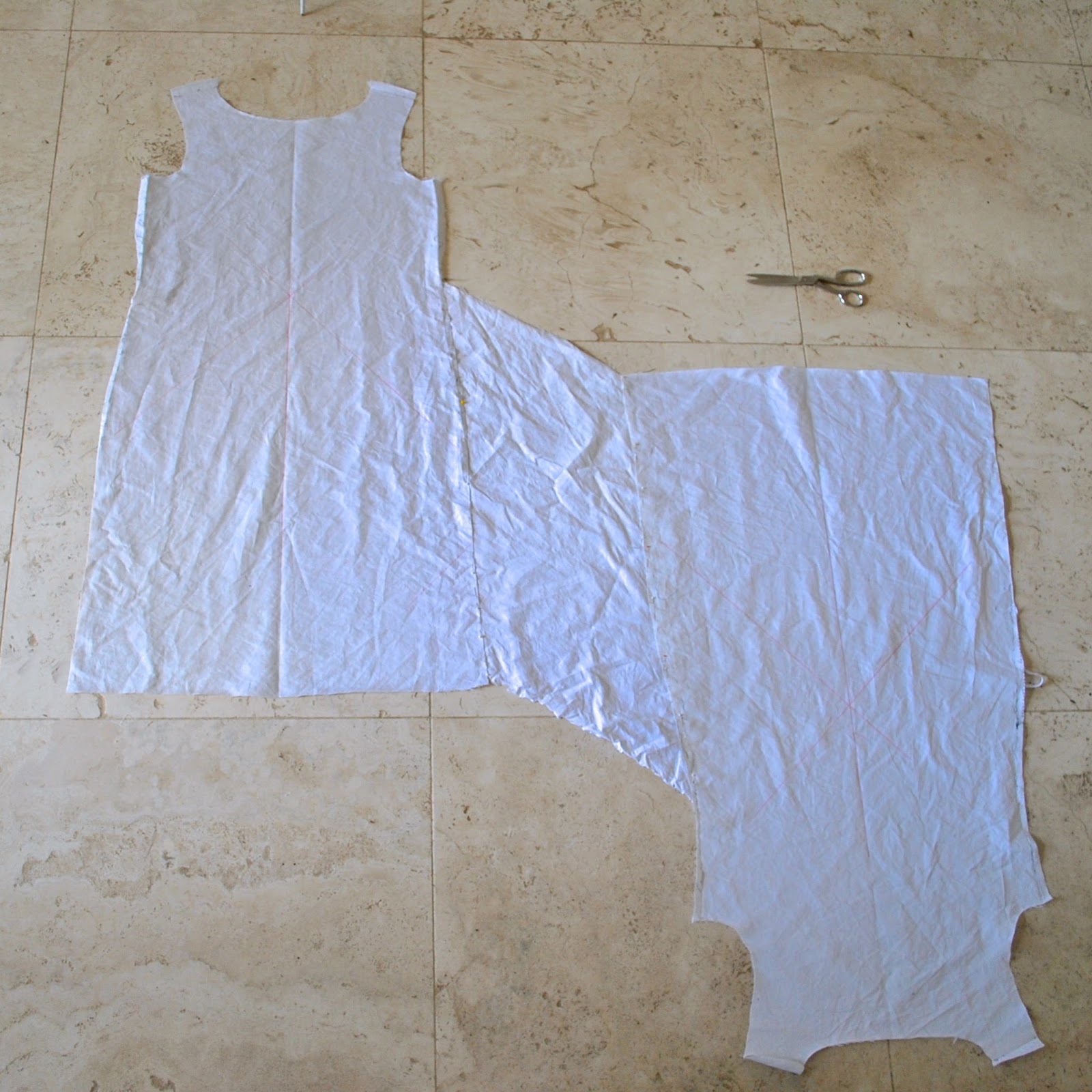 Made up the second muslin in white sheets, and the fit and style were given a big thumbs up… perfect! I cut this one up to use as my pattern for the actual dress…