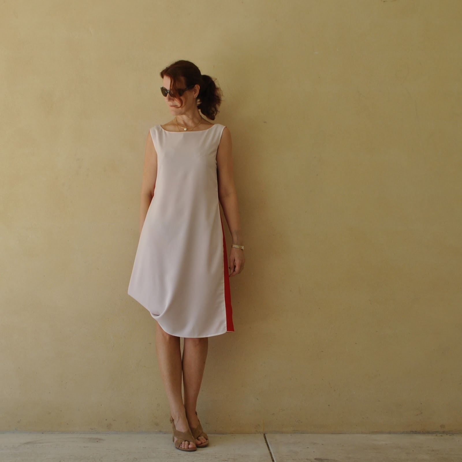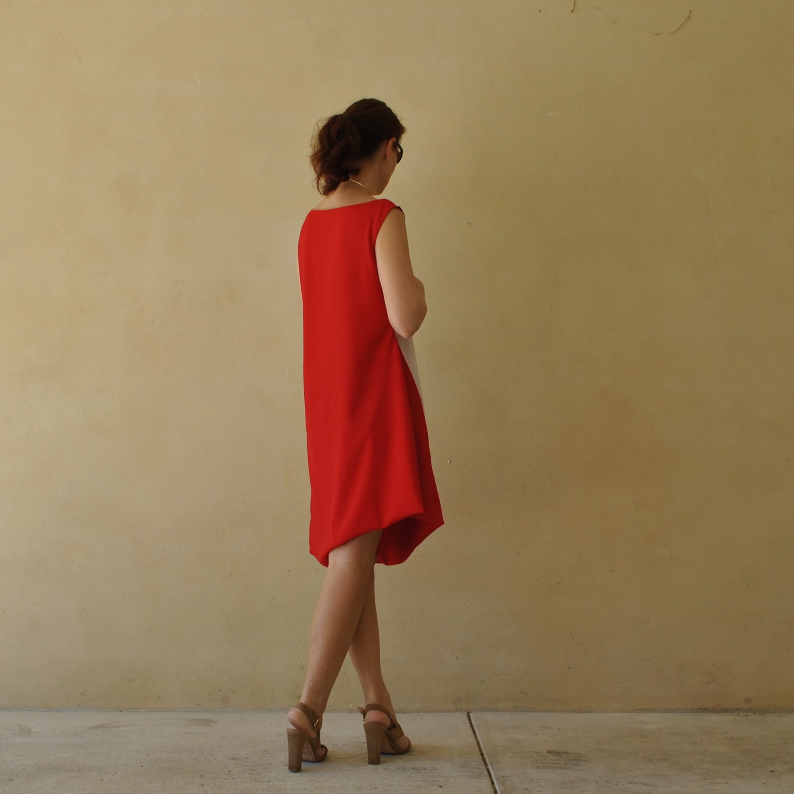 For Kelly’s top, I’d chosen the asymmetrical cowl top from Pattern Magic 2; the shape of the cowl is dictated by the shape of the facing. It’s always a bit of a challenge to draft your own patterns, but well I love a challenge! and I knew the shape of this top would be super flattering for Kelly and suit her beautifully… I cut the pieces on the bias and inserted a maroon invisible zip in the left side seam, so it zips down undone… however Kelly says she can squeeze into it without having to undo the zip which is cool. I think the bias-cut is what gives it that little bit of stretch.