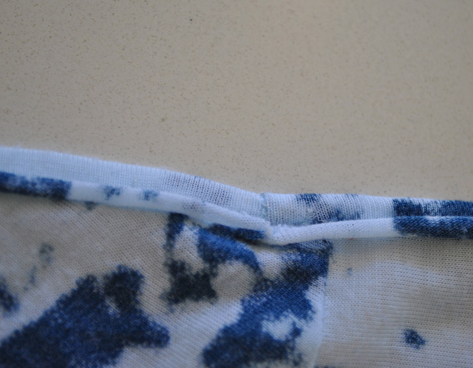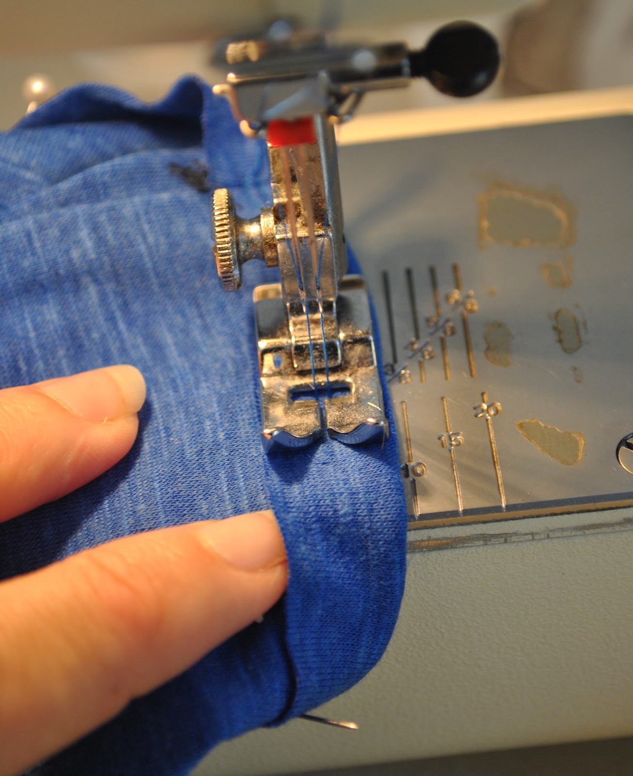 It can be used on any raw edge; armholes, necklines, sleeve edges, cardigan edges, Tshirt hems, I’ve even used it on firm stretch fabric waistbands, dress hems; anything.
