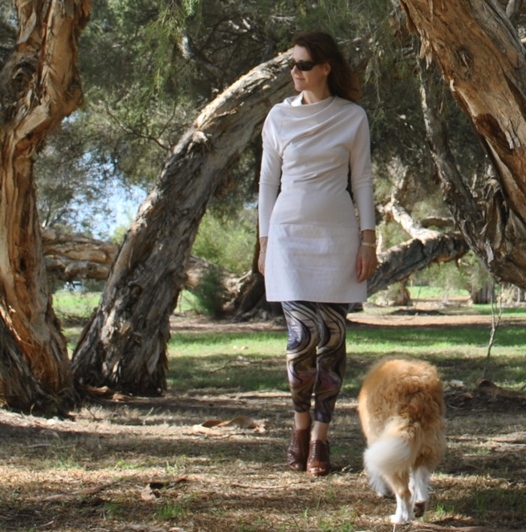 Leggings; self-drafted, of printed stretchy stuff, details here and made using my tutorial for making your own custom-fit leggings here
