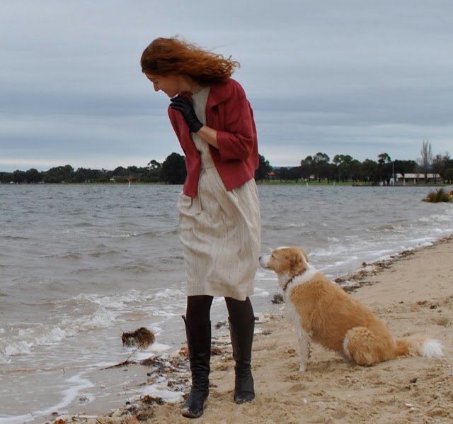 I made it about … oh, three or four years ago? (not sure now 😀 ) Mum and I had been to Melbourne together and visited a few fabric stores including Astratex, and I bought this beautiful pure wool woven fabric, knowing I wanted to make a Chanel style jacket out of it. I also bought the fabric for this skirt from the same place, yes it is a store packed with truly lovely and luxurious, if pricey fabrics. Fabrics for garments you want to last a lifetime…