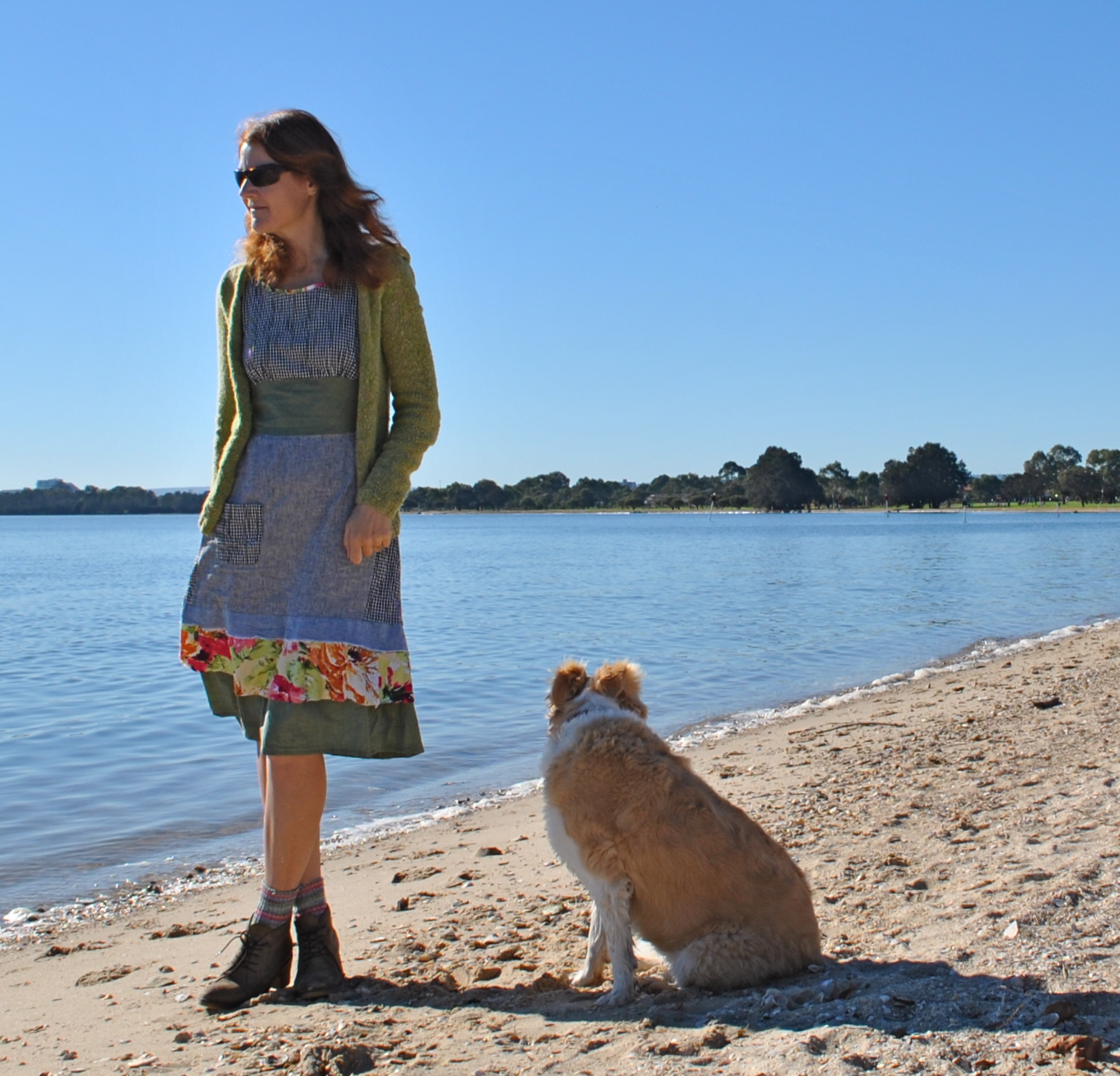 I also added sleeves to my design; well with a scarf as part of the shirt I figured it to be more of a winter-y garment, therefore sleeves would be more the go than a sleeveless thing. My sleeves are quite plain, and for a little military/trench coat touch I added tabs with large tortoise-shell buttons. Well, tortoiseshell; they’re actually plastic, but I’m using the term “tortoise-shell” as a description of their colour. I do not advocate depriving a tortoise of its shell in order to provide me with a button, no sirreee.