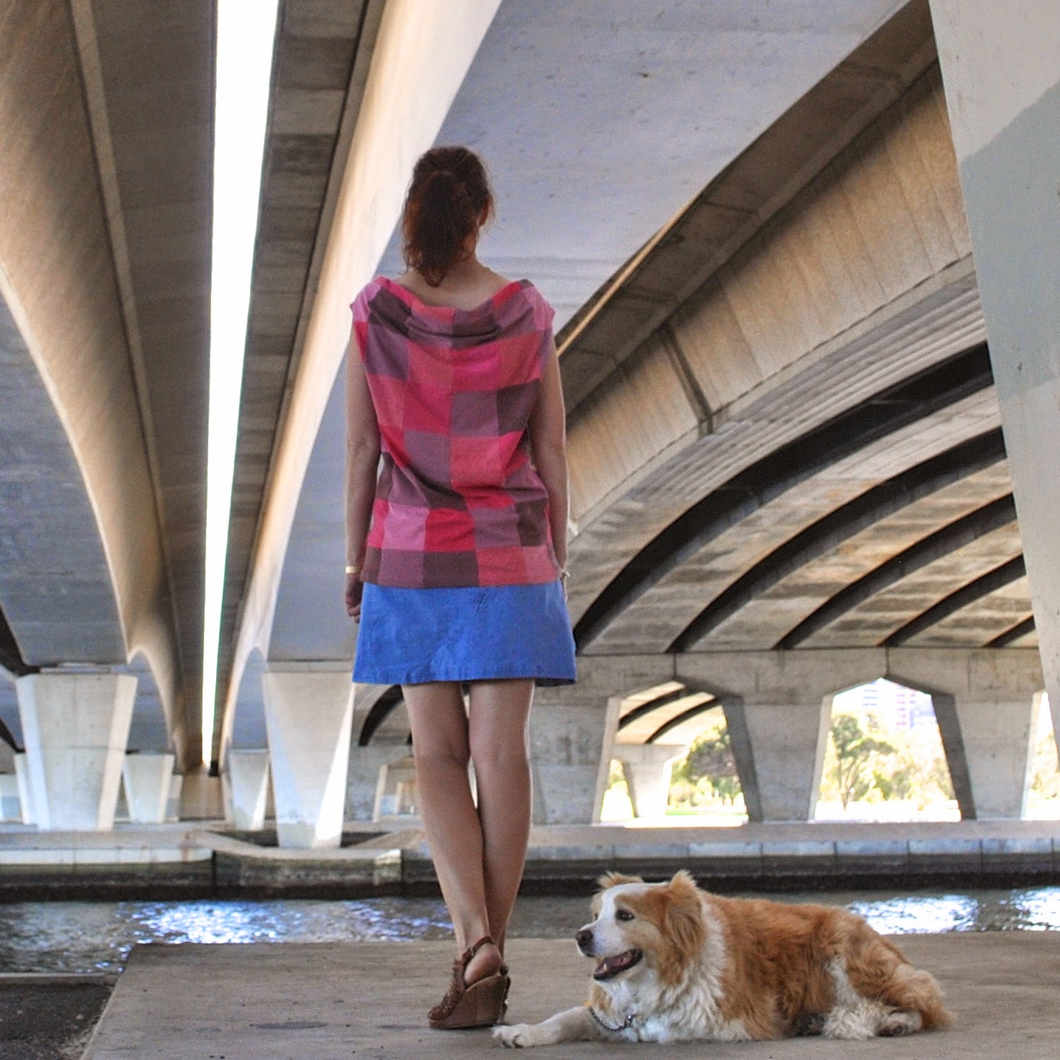 Anyway, I really did want it to work, and so just recently I drastically shortened that hem and rolled the sleeves up. Massive improvement. I left off the waist tie channel and tie. I reckon that as a boxy, shorter tunic, with rolled up sleeves, it still had that relaxed, fairly oversized, comfy vibe that I was after… stylishly chic, I hope!