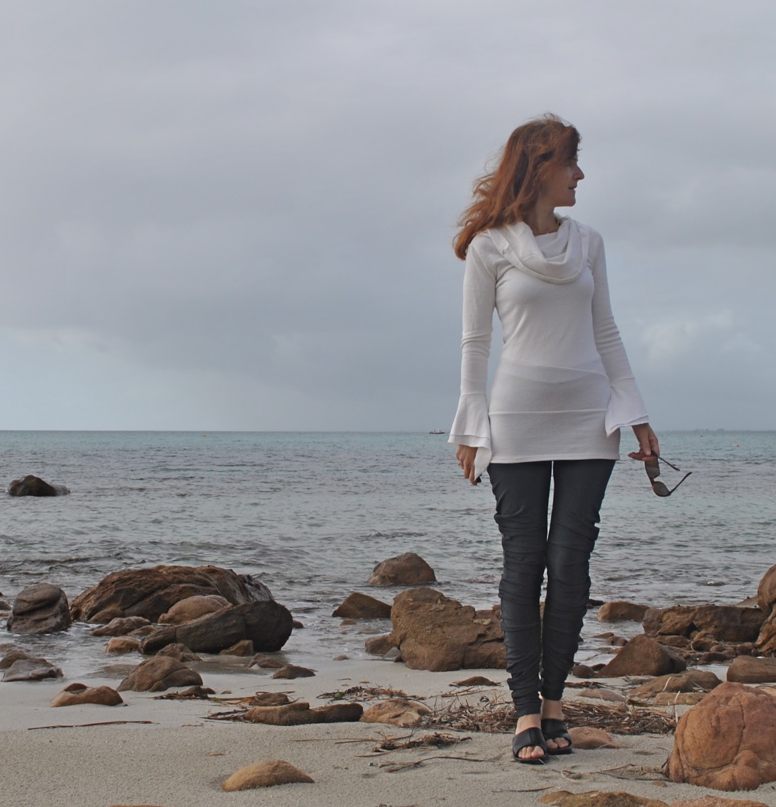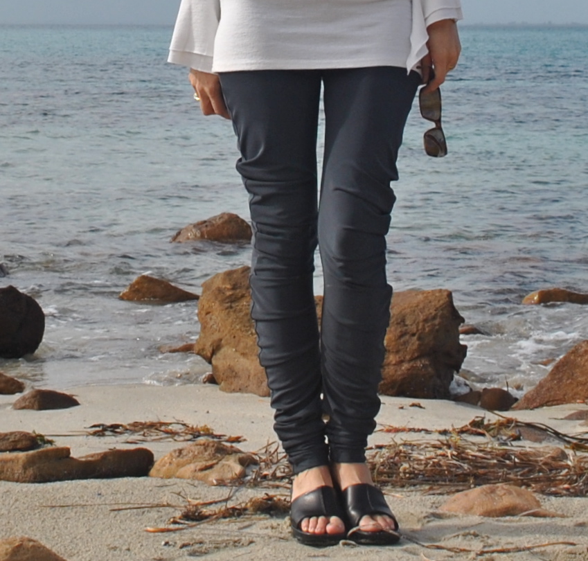 leggings are form-fitting and “rumple-less” about my hips, while the ones pictured on the model in the book have the rumples going all the