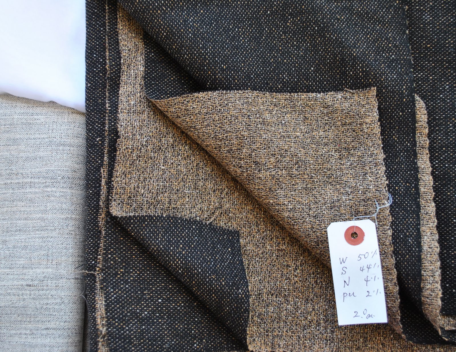 I went out and bought a few extra supplies for my Vogue 8333 jacket; the horsehair canvas and the silk organza for the underlining.  Something I have not got yet though is the lining and this is because I have hit a bit of a dilemma; when I looked at the silk linings I still couldn’t decide which side of this fabric is to be my right side…  When I first spotted this fabric in Japan I knew it was The One, and I initially was drawn to the wrong wide of the fabric, which is the darker side.  It is mostly a very dark charcoaly-brown, almost-but-not-quite black, and showing through is the multicoloured thread of the other side, coming up as dots of coffee, beige and bone.