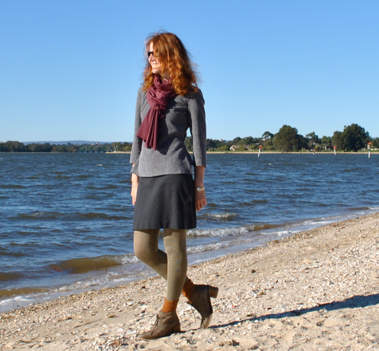 Skirt; skirt “d” from Unique Clothes Any Way You Like, by Natsuno Hiraiwa, silver grey crepe, details here, and to see this skirt styled in 6 different ways go here