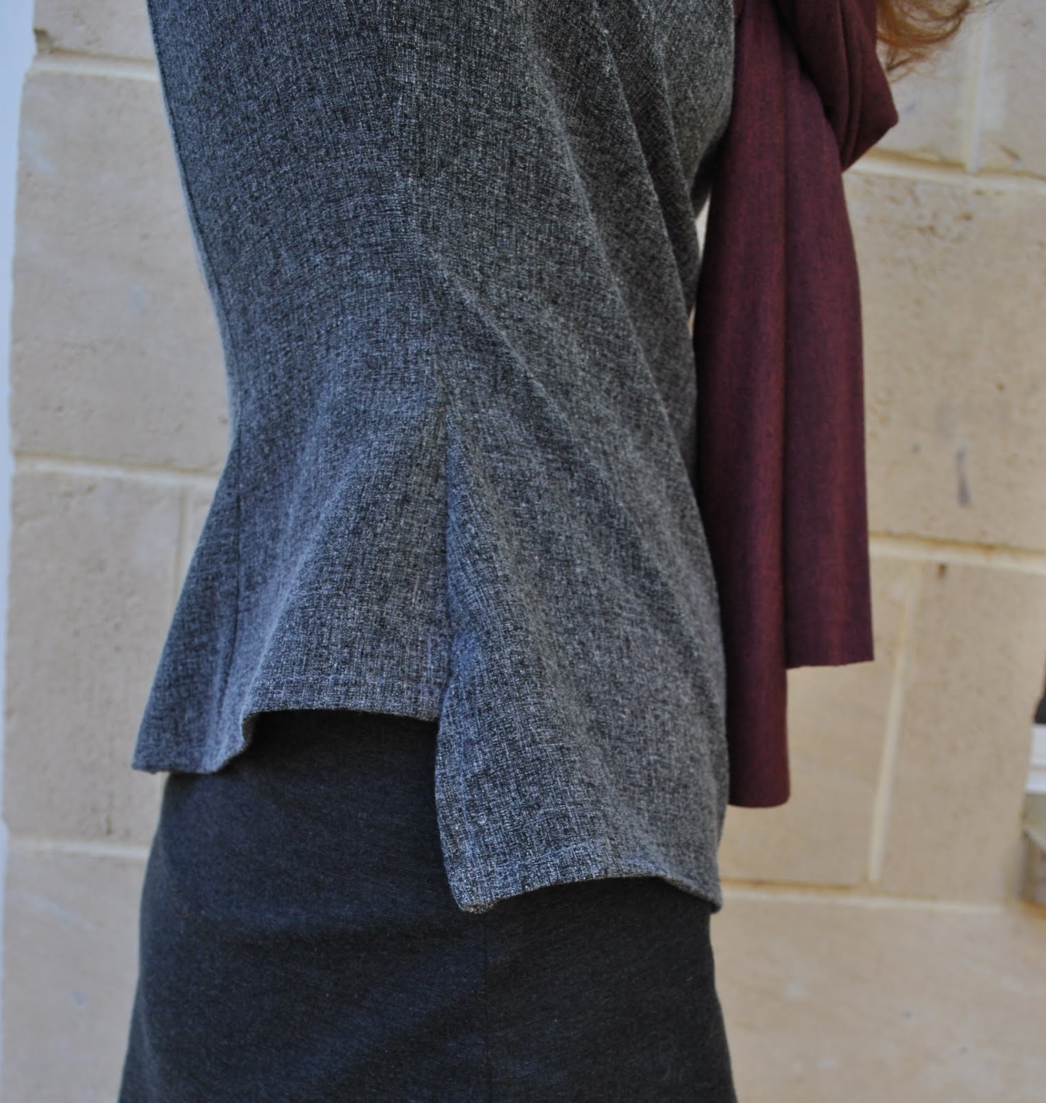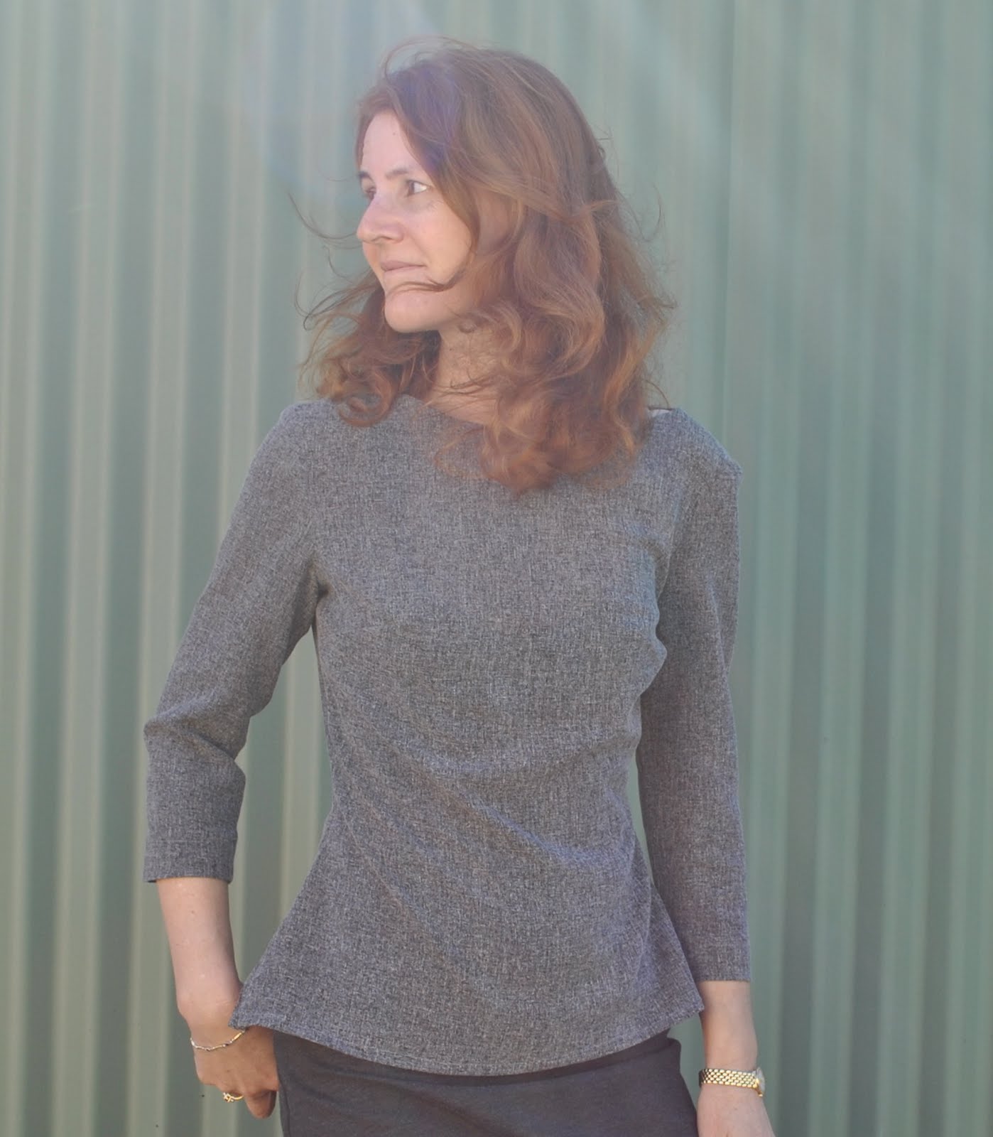 Top; the top part of Burdastyle magazine 08/2009, dress 128, of charcoal wool mix, my review of this pattern here