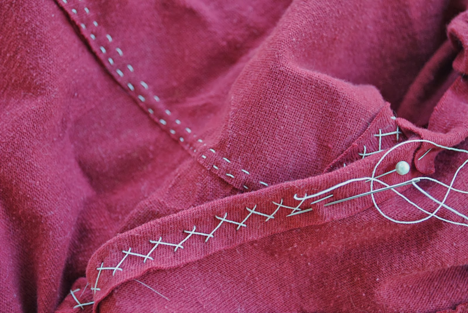 Inspiration? Well, I’ve pinned like a tonne of this sort of thing… this Isabel Marant dress, this mystery jacket, and also Yoshimi’s jeans from a few years ago. Also, while I was busy laying down patches and switching around different shapes and sizes, this cottage kept popping into my head. Now a cottage probably seems like an off-the-wall (ha!) inspiration for a skirt, but let me explain; superficially, the re-cycled nature of the materials is an obvious commonality between the cottage and my skirt, as well as artistically, in the random and irregular grid of their design. And in purpose, pockets in clothing have a correlation to windows in architecture. Pockets and windows are a visual feature of a thing, but also a functional component of that thing; specifically as an opening to/in their respective objects but not the entry point to that object.