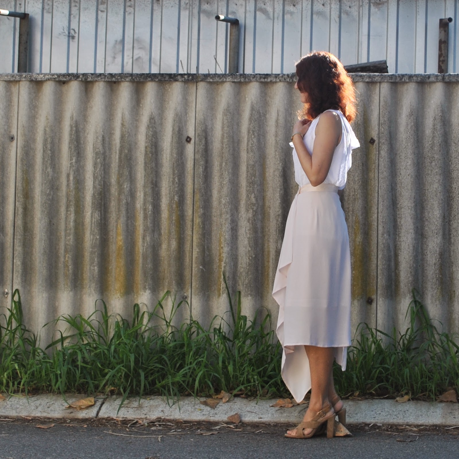 red line: vertical line from the outer edge of green line, straight down. This is the new side edge of the dress/top.